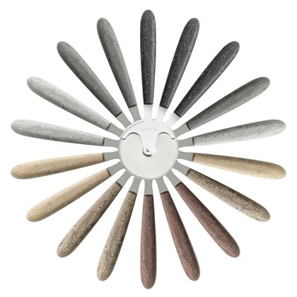 Vero Pino, collezione Natural Wood, è una posata in acciaio inossidabile 18/0 con finitura lucida e manico in PBT saldato ad ultrasuoni con decoro realizzato con stampa sublimatica.