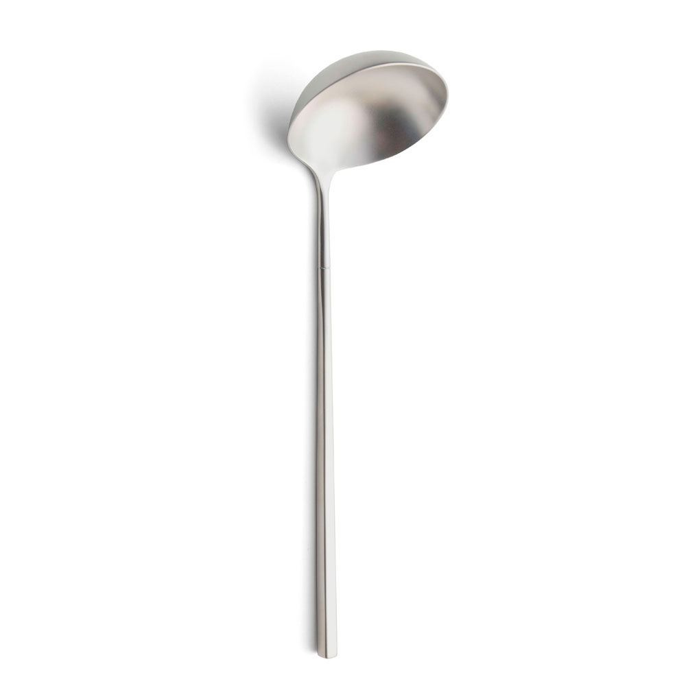Caratteristica principale di Kyoto Sabbiato è la semplicità del disegno iconico quasi infantile. Il progetto si è sviluppato sull‘idea di purezza, sull’equilibrio tra la leggerezza della manicatura e la rotondità delle coppe dei cucchiai.