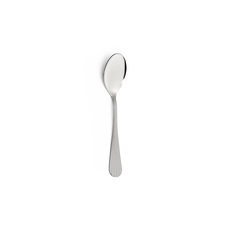 Il design arrotondato nella parte finale del manico e le linee di decoro continue che percorrono la lunghezza della posata creano un suggestivo effetto plissé, esaltato dal raffinato gioco di luce e ombra.