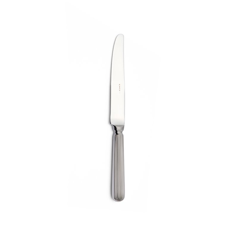 Il design arrotondato nella parte finale del manico e le linee di decoro continue che percorrono la lunghezza della posata creano un suggestivo effetto plissé, esaltato dal raffinato gioco di luce e ombra.