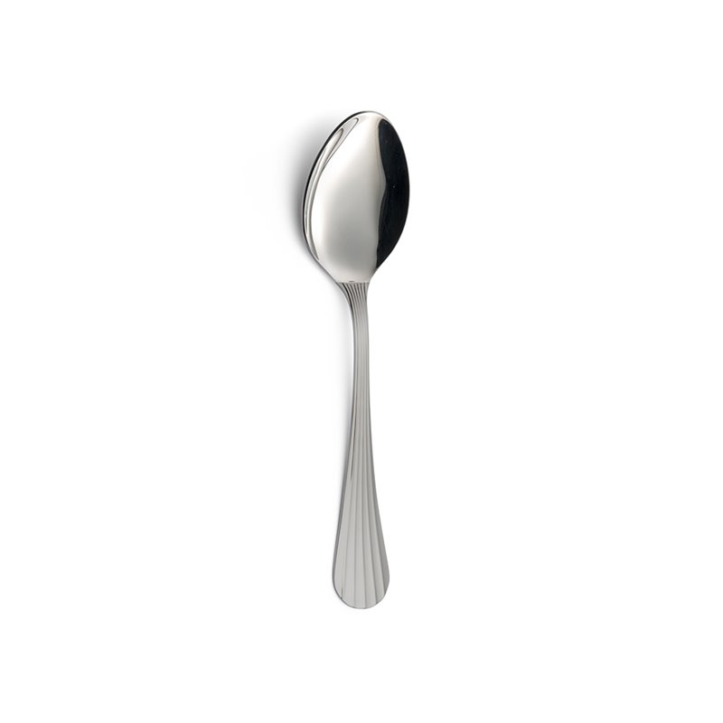 Il design arrotondato nella parte finale del manico e le linee di decoro continue che percorrono la lunghezza della posata creano un suggestivo effetto plissé, esaltato dal raffinato gioco di luce e ombra.