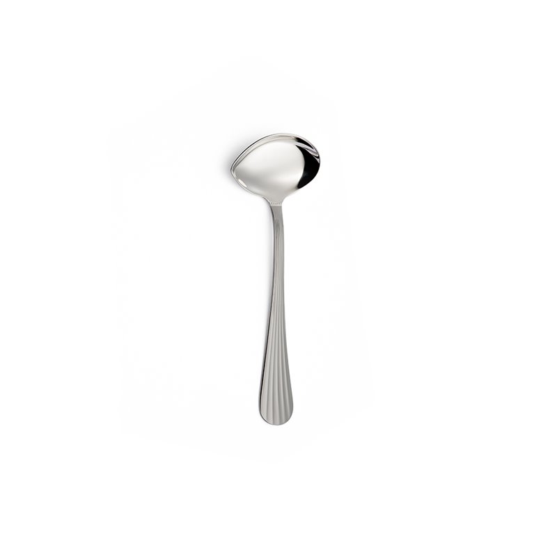 Il design arrotondato nella parte finale del manico e le linee di decoro continue che percorrono la lunghezza della posata creano un suggestivo effetto plissé, esaltato dal raffinato gioco di luce e ombra.