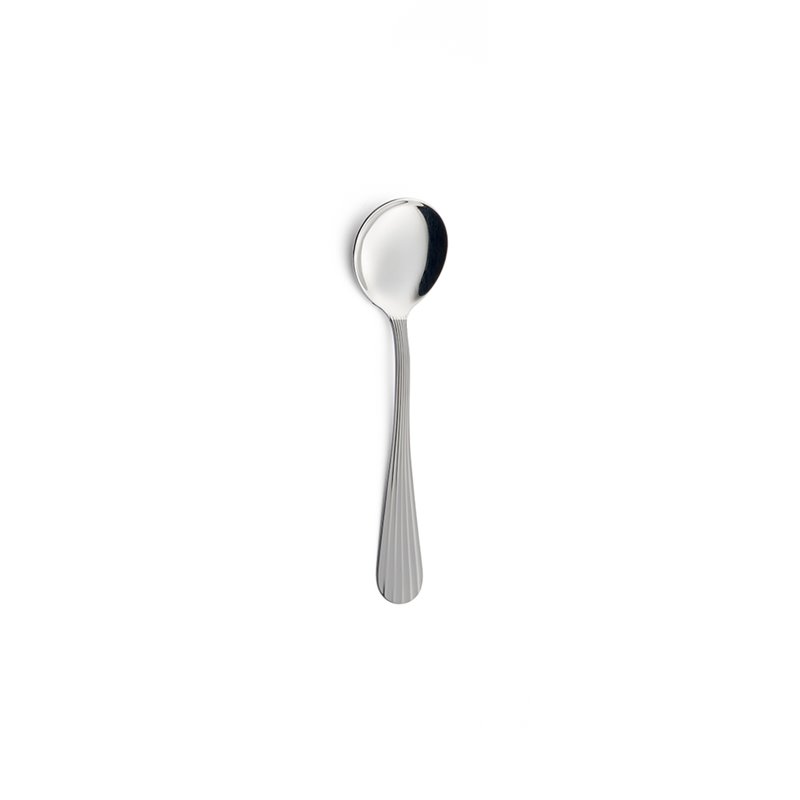 Il design arrotondato nella parte finale del manico e le linee di decoro continue che percorrono la lunghezza della posata creano un suggestivo effetto plissé, esaltato dal raffinato gioco di luce e ombra.