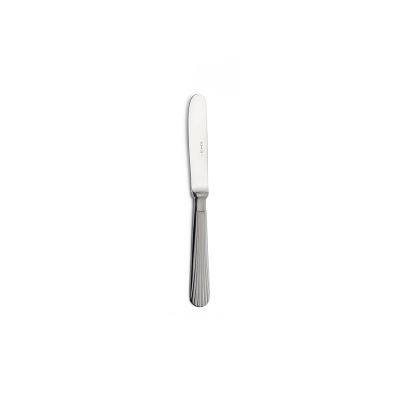 Il design arrotondato nella parte finale del manico e le linee di decoro continue che percorrono la lunghezza della posata creano un suggestivo effetto plissé, esaltato dal raffinato gioco di luce e ombra.