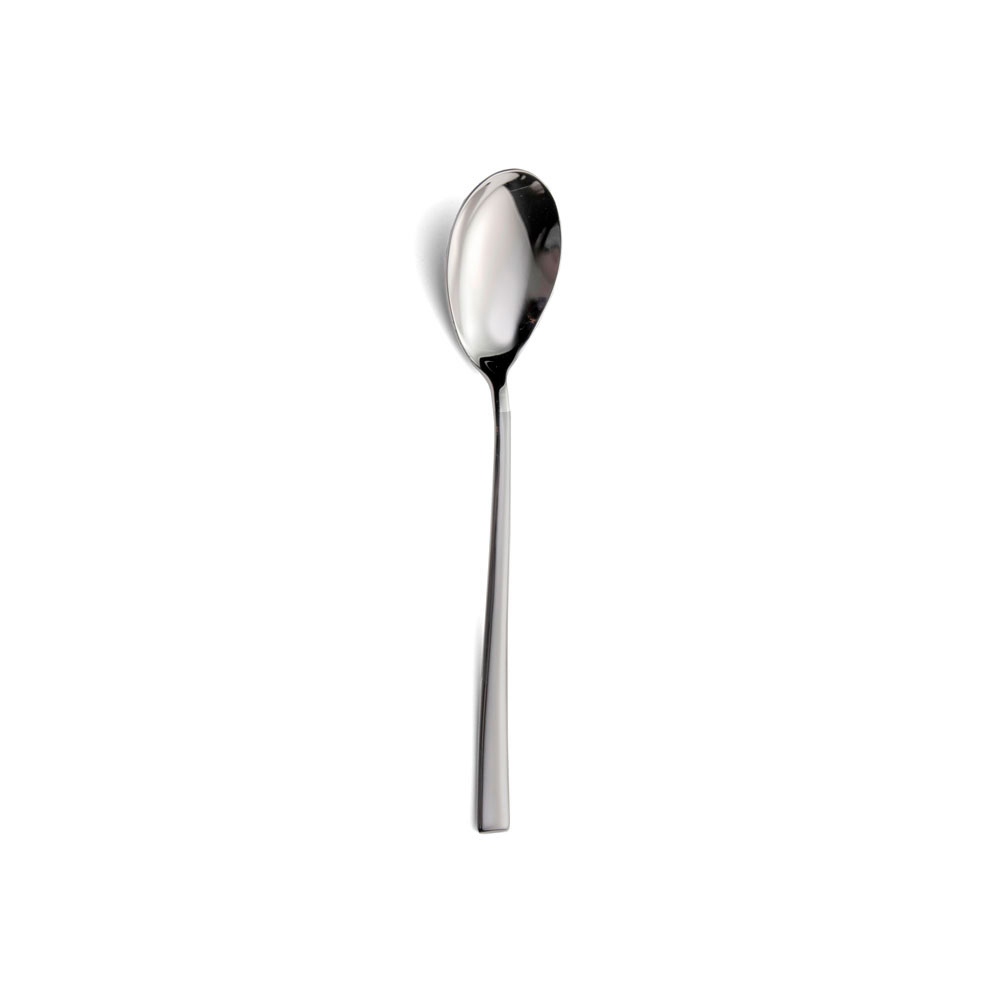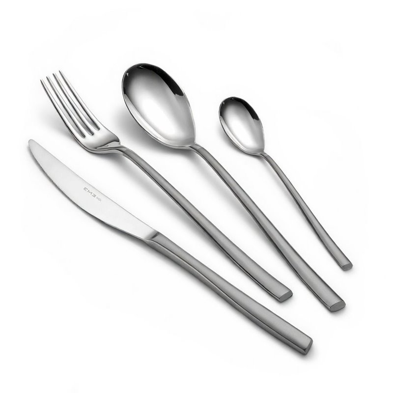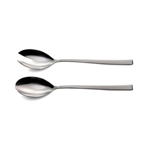 , garantisce coerenza stilistica totale: comprende le posate essenziali per il servizio quotidiano (coltello, forchetta e cucchiaio da tavola), una ricca selezione per la frutta e il dessert (coltello, forchetta e cucchiaio da frutta, forchetta dolce), i cucchiaini da caffè e moka, oltre a pezzi da servizio professionali come mestolo, cucchiaio e forchetta da servizio, coppia insalata. Perfetta per apparecchiature formali, informali o personalizzate, mantenendo sempre lo stesso linguaggio estetico raffinato e contemporaneo.
