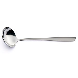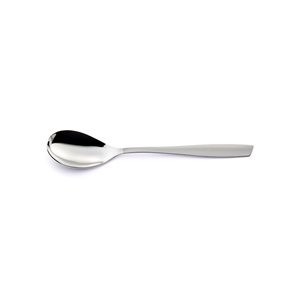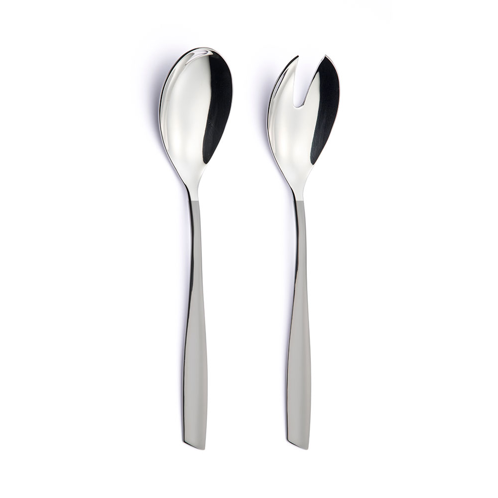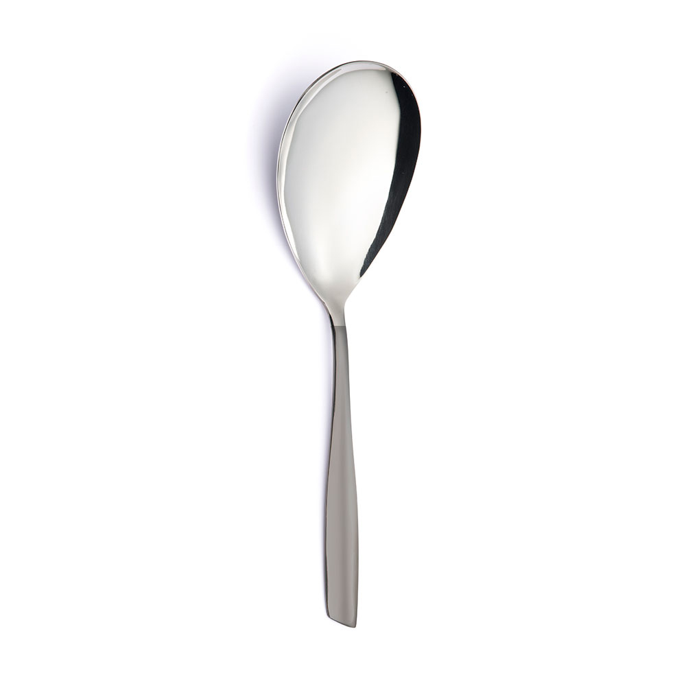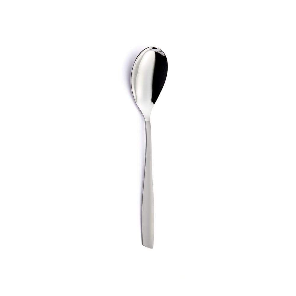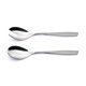 Le linee dal design contemporaneo e di tendenza si esprimono al meglio nelle morbide rotondità dei cucchiai, mentre l’impugnatura risulta confortevole grazie ai tratti armoniosi e al caratteristico taglio obliquo sulla parte terminale dei manici.