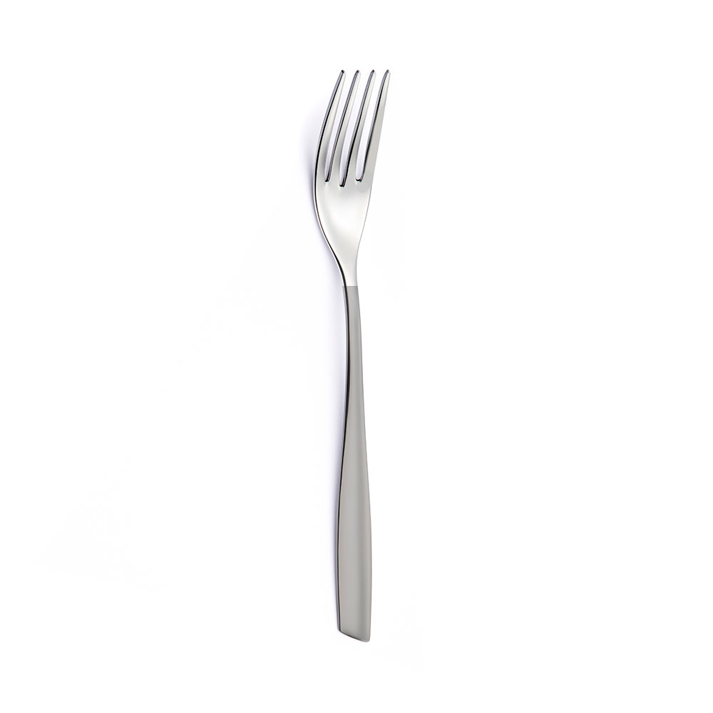 è una collezione di posate in acciaio inox 18/10 che unisce con equilibrio la finitura sabbiata e quella lucida, dando vita a un raffinato gioco di contrasti.
