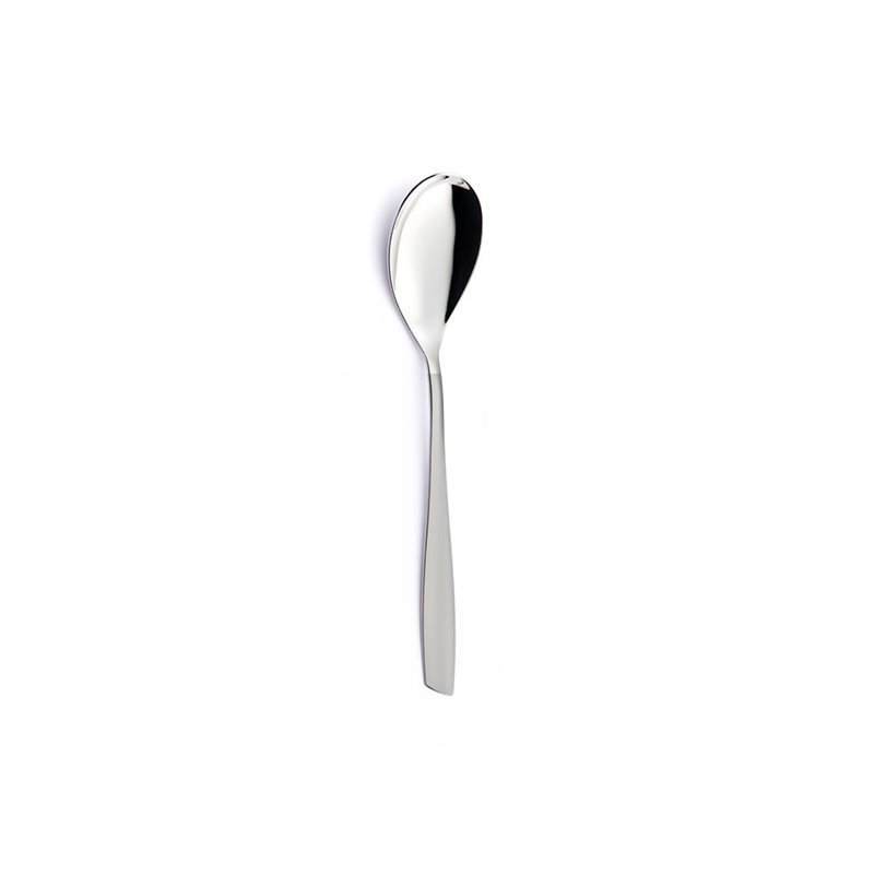 Le linee dal design contemporaneo e di tendenza si esprimono al meglio nelle morbide rotondità dei cucchiai, mentre l’impugnatura risulta confortevole grazie ai tratti armoniosi e al caratteristico taglio obliquo sulla parte terminale dei manici.