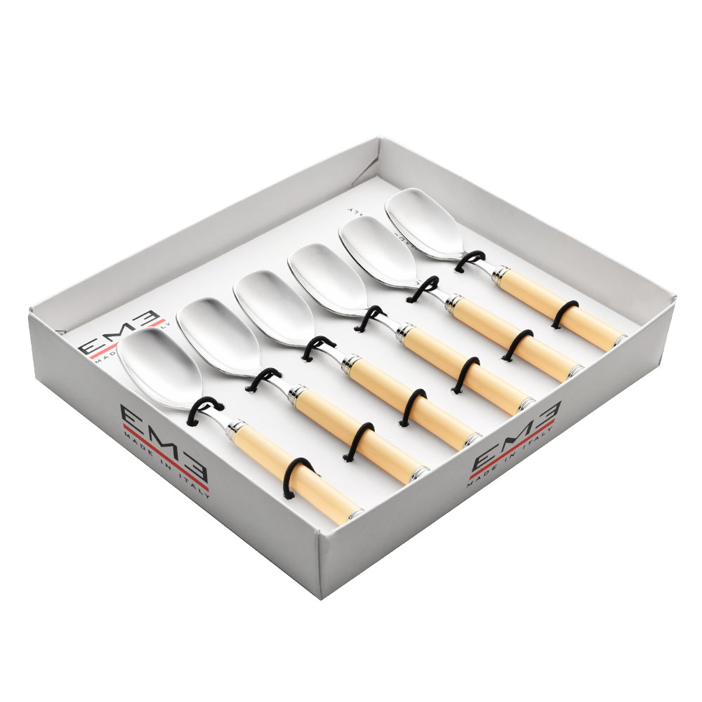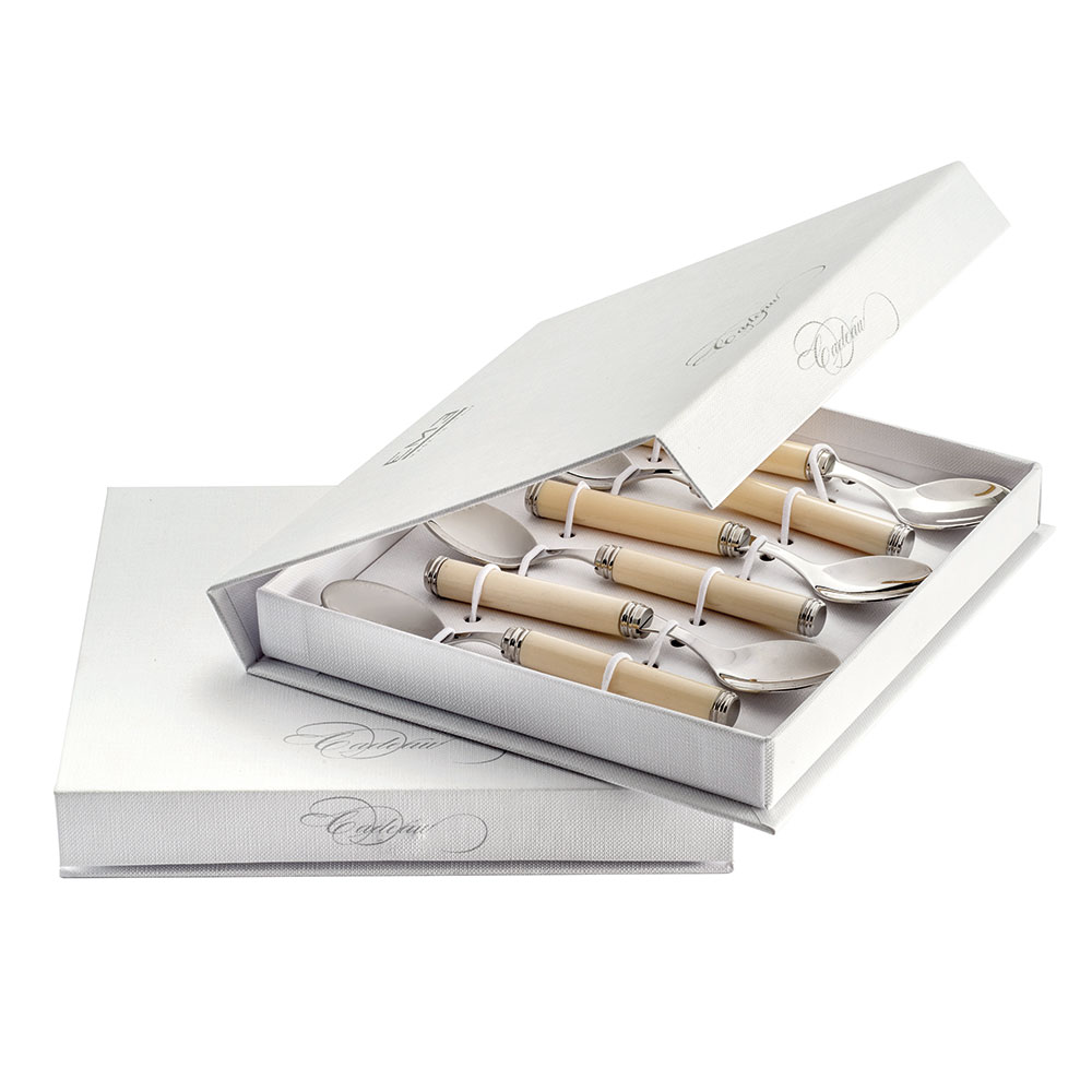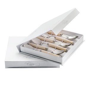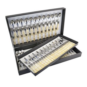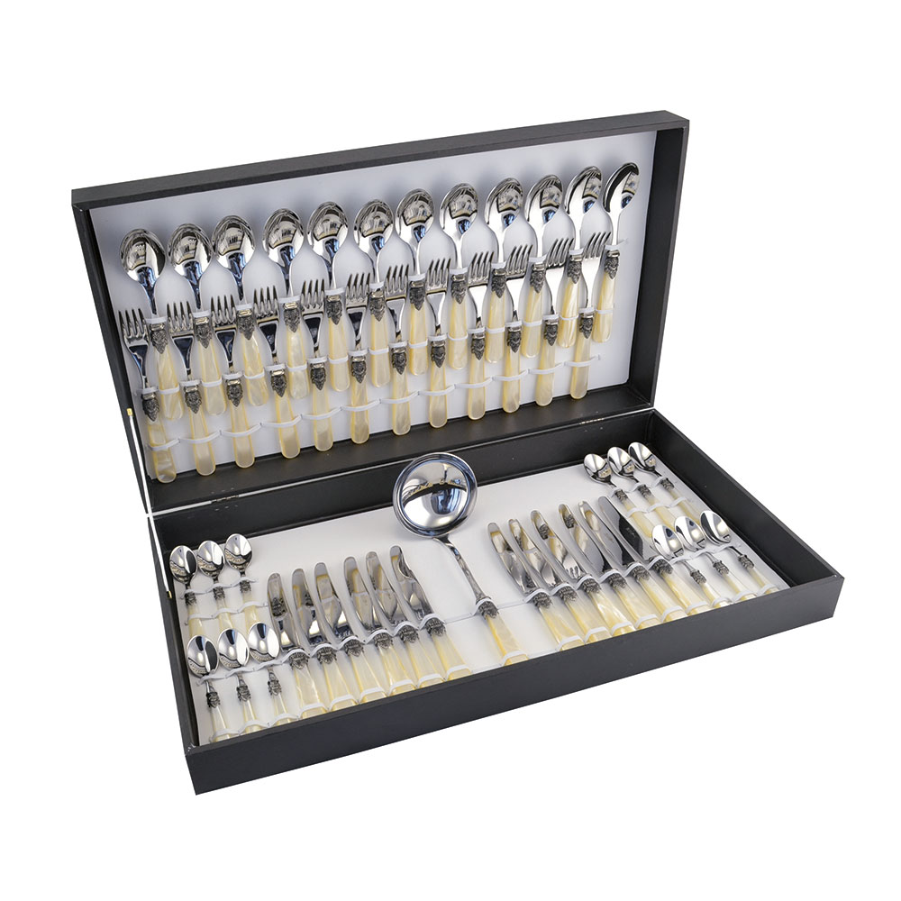 Mona Lisa è una collezione di posate disponibile in una ampia gamma di 32 articoli e in una gamma di 7 colori classici perlati.