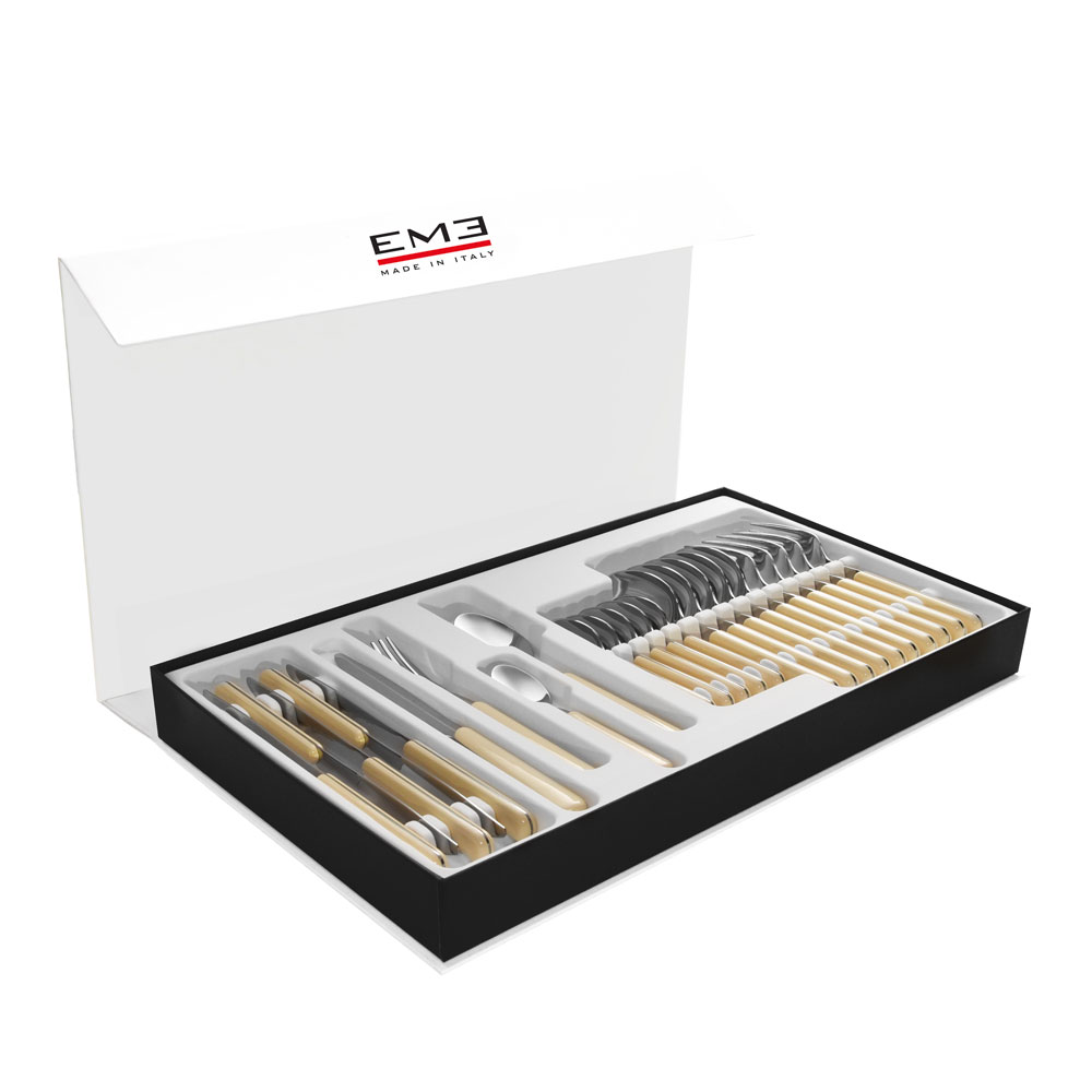 Brio è una collezione di posate disponibile in una gamma di 19 articoli e con una palette colori molto variegata di 29 nuance.